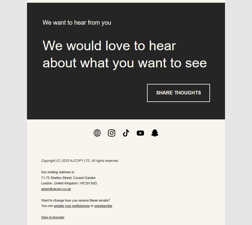 - Your Contributions are not unsolicited or unauthorised advertising, promotional materials, pyramid schemes, chain letters, spam, mass mailings, or other forms of solicitation.